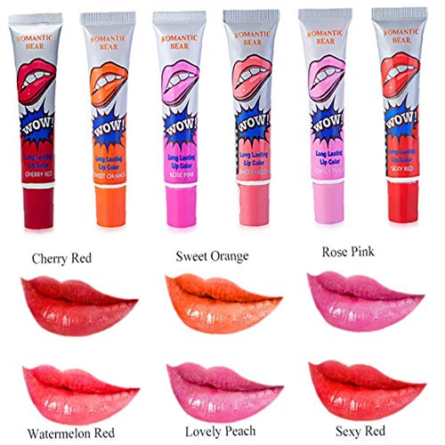 6Colours Womens Gemakkelijk Peel Off Lip Gloss make-up Lip Gloss Lipstick Waterproof Tear Lip Stain Cosmetic Gift Set…